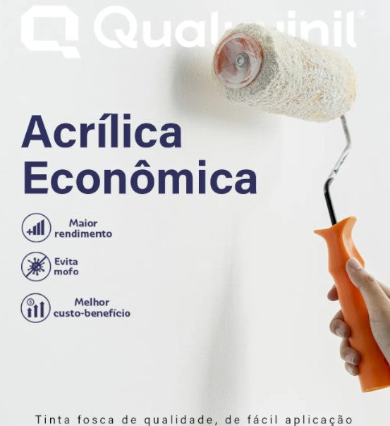 A Tinta Acrílica Econômica Qualyvinil é ideal para quem busca bom rendimento, fácil aplicação e acabamento fosco uniforme em ambientes internos. Desenvolvida para oferecer secagem rápida, boa cobertura e resistência, é a escolha certa para pinturas residenciais com excelente custo-benefício.