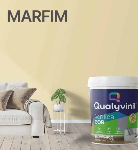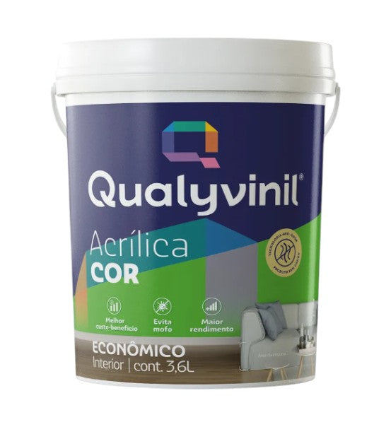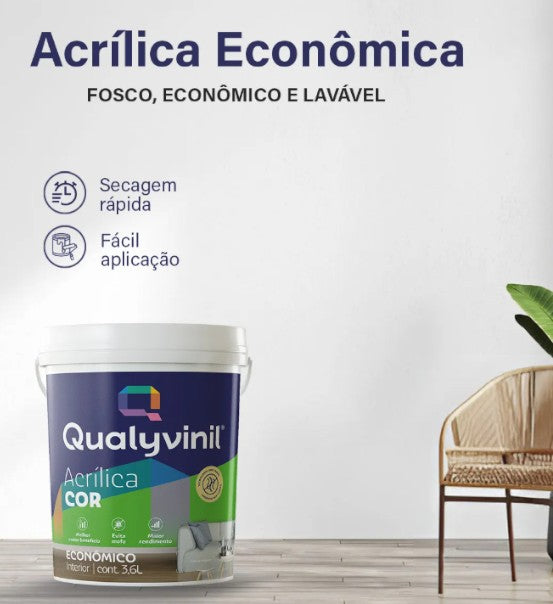 Garanta agora a Tinta Acrílica Econômica Qualyvinil 3,6 L e tenha acabamento fosco de qualidade, aplicação fácil e ótimo rendimento para seus ambientes internos.
